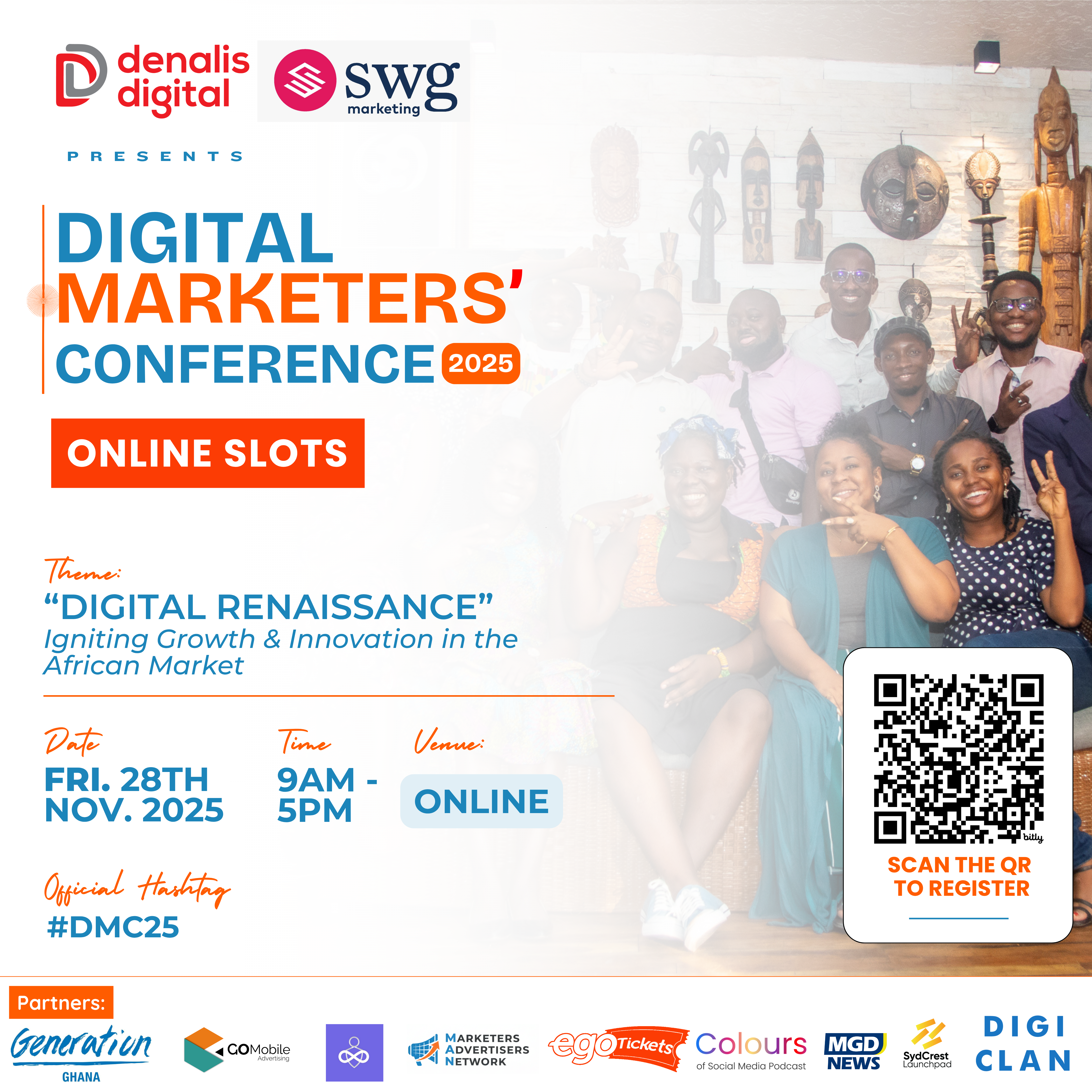 The conference will bring together digital marketing professionals, innovators, and business leaders to explore strategies shaping Africa’s digital economy. The partnership includes leading industry collaborators such as Digiclan Ghana, Generation Ghana, the Marketers and Advertisers Network, the Colours of Social Media Podcast, GO Mobile Advertising, and egoTickets.